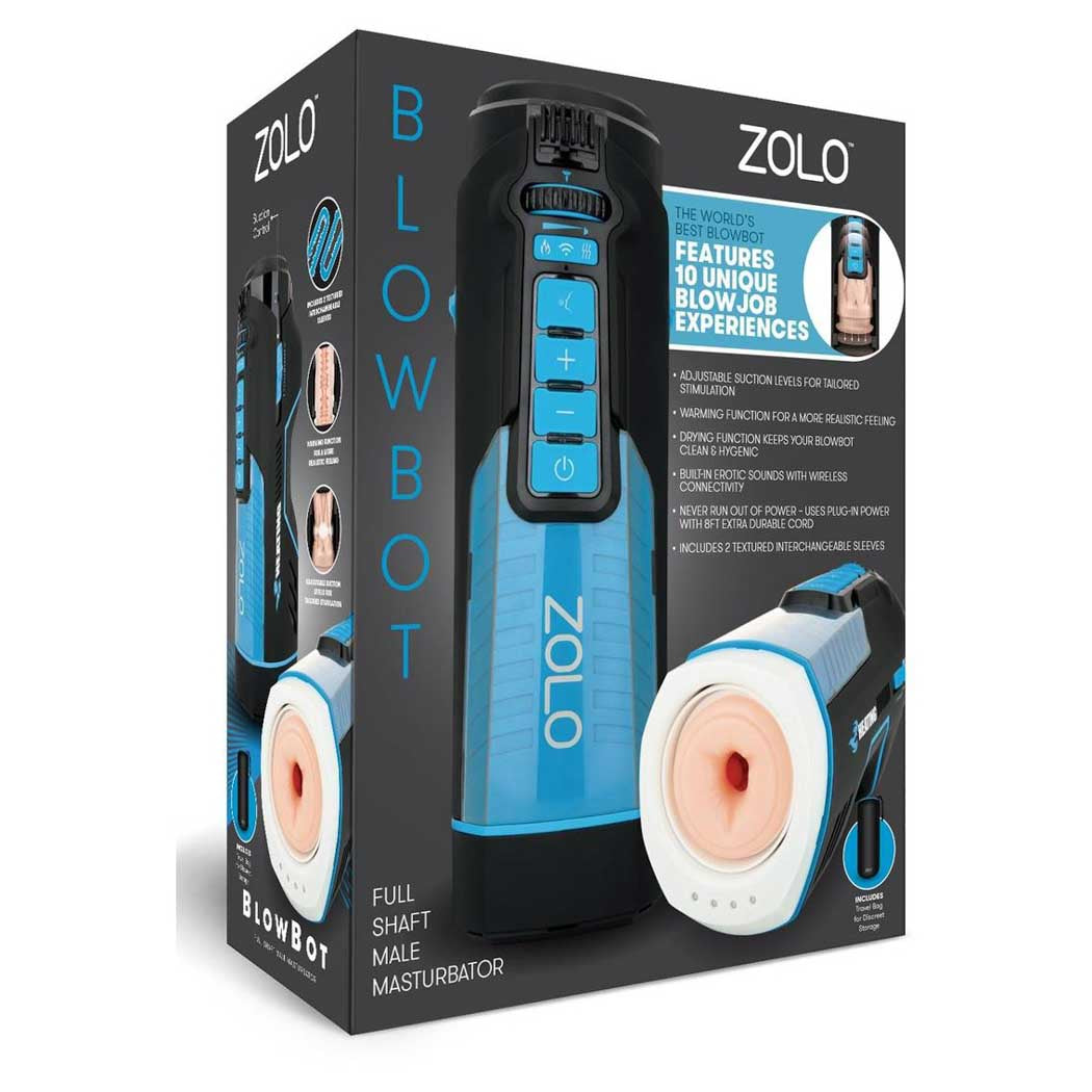 The ZOLO Blowbot is a plug-in full shaft male masturbator that features 10 unique blow job experiences for the world's best blowjob! The Blowbot has it all adjustable suction levels for tailored stimulation, a warming function for a more realistic feeling, two textured interchangeable sleeves, and a drying function that keeps your Blowbot clean and hygienic. Turn on the built-in erotic sounds for full immersion into your session. With the extra durable 8-foot long cord, you'll never have to worry about running out of power.