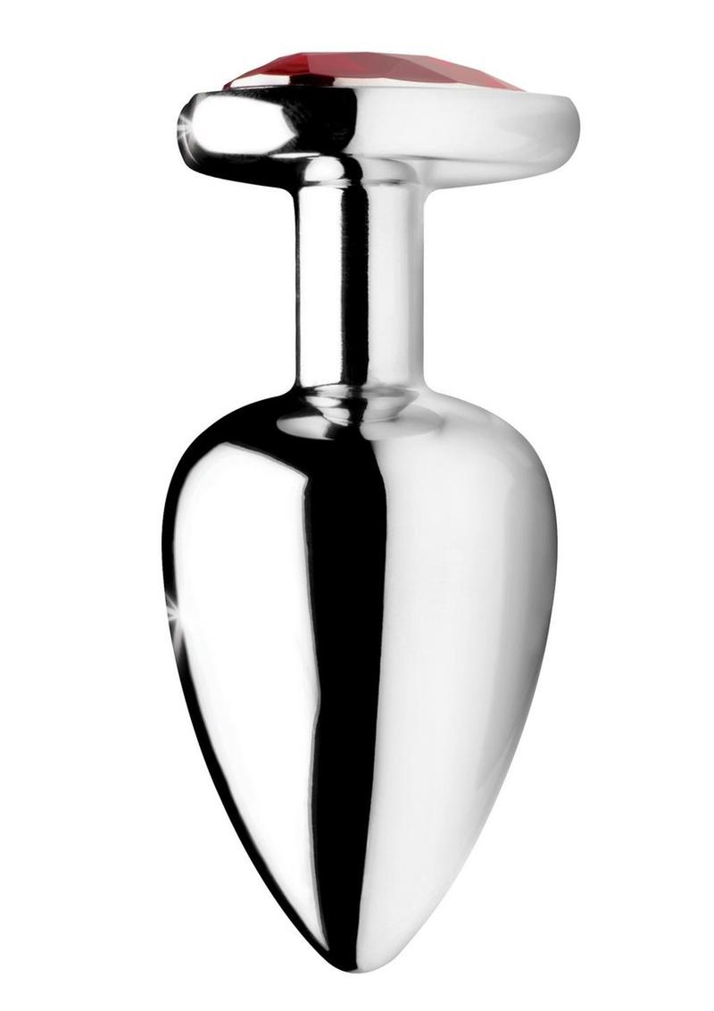 Spark your desire for decadent anal play with this beautiful Booty Sparks plug! Featuring a smooth metal finish in lightweight aluminum, it features a sweet heart shaped gem in a deep crimson red. The slim shaft will keep it from slipping out of place even during vigorous play. You will want to show off your new sparkling booty as you bend over and tease your lover. The nickel free aluminum alloy is nicely weighted and temperature sensitive for the perfect amount of sensation. When play is over, the non-porous material will clean easily without harboring any harmful bacteria. Make that booty sparkle!