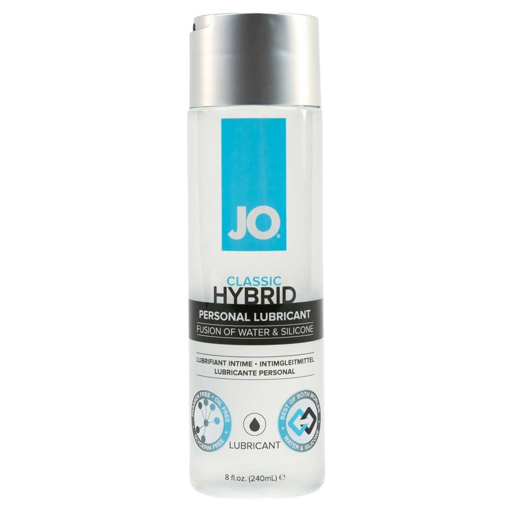 JO Classic Hybrid lubricant is the perfect combination of JO's popular silicone formula and our ultra-versatile water-based formula that elevates every intimate moment to a rich sensual experience. It’s the uncompromising best of both worlds – the long-lasting glide and buttery smooth texture of silicone and the easy clean up of water-based options. Perfect for solo, toys, and partnered pleasure, JO Classic Hybrid takes every touch and sensation over the edge.