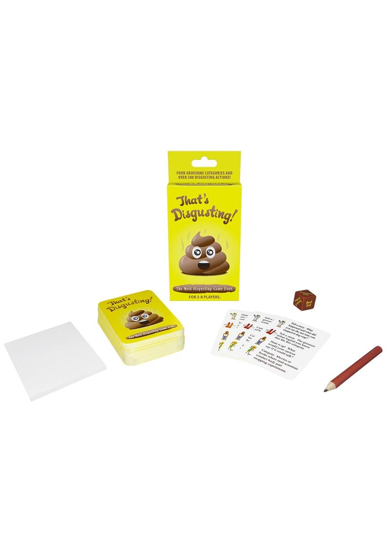 The hilarious party game where you and your friends attempt to out gross each other. Ham it up by doing overacted impersonations, name items that fit into vulgar categories, judge your friends in their efforts to gross each other out, and much, much more!!!
