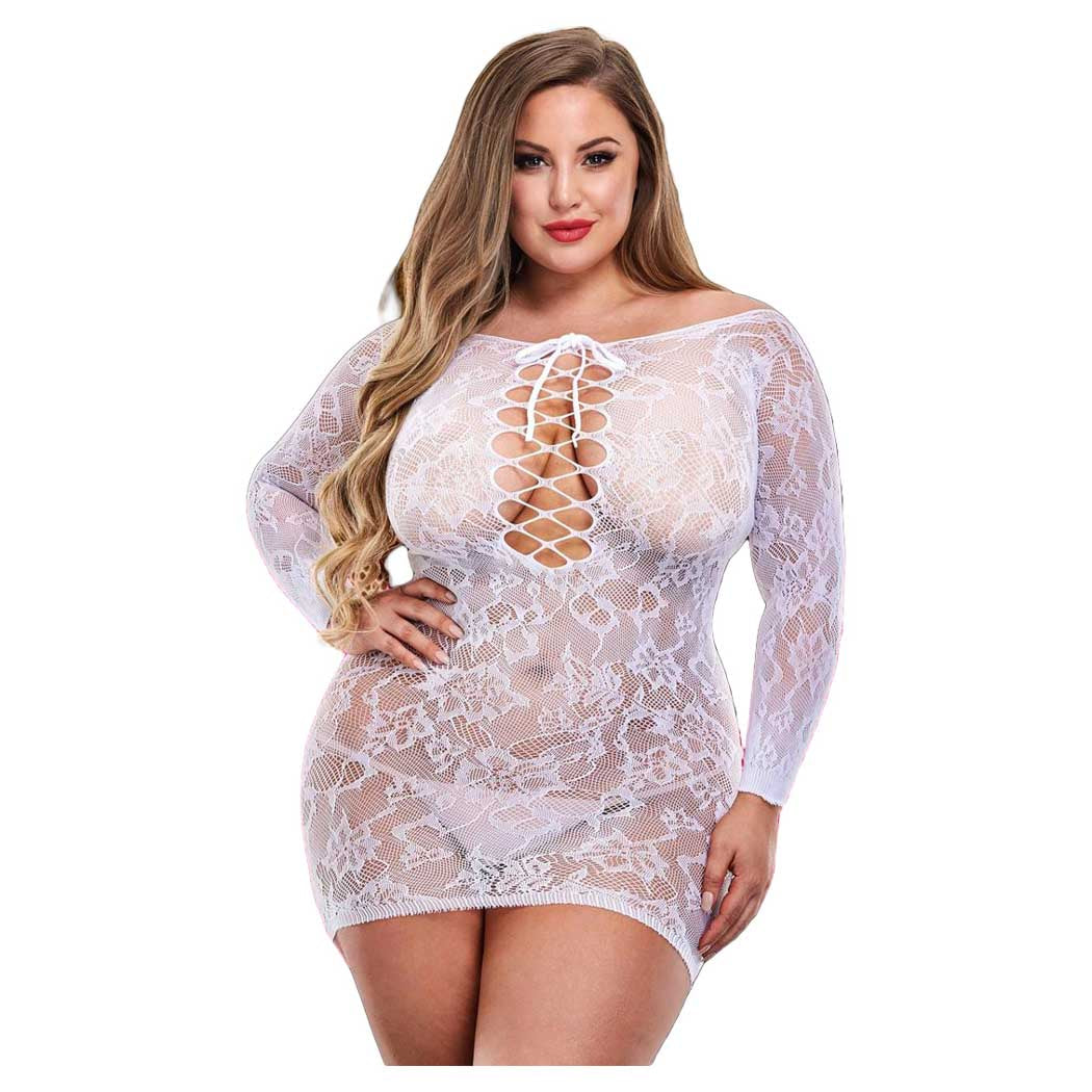 This off the shoulder mini dress is cut high on the hips with a dramatic long sleeve that levels up the look. Available in midnight black or white, the lace is very see-through, and the front closes with a criss-cross shoestring tie... keeping all eyes on you!