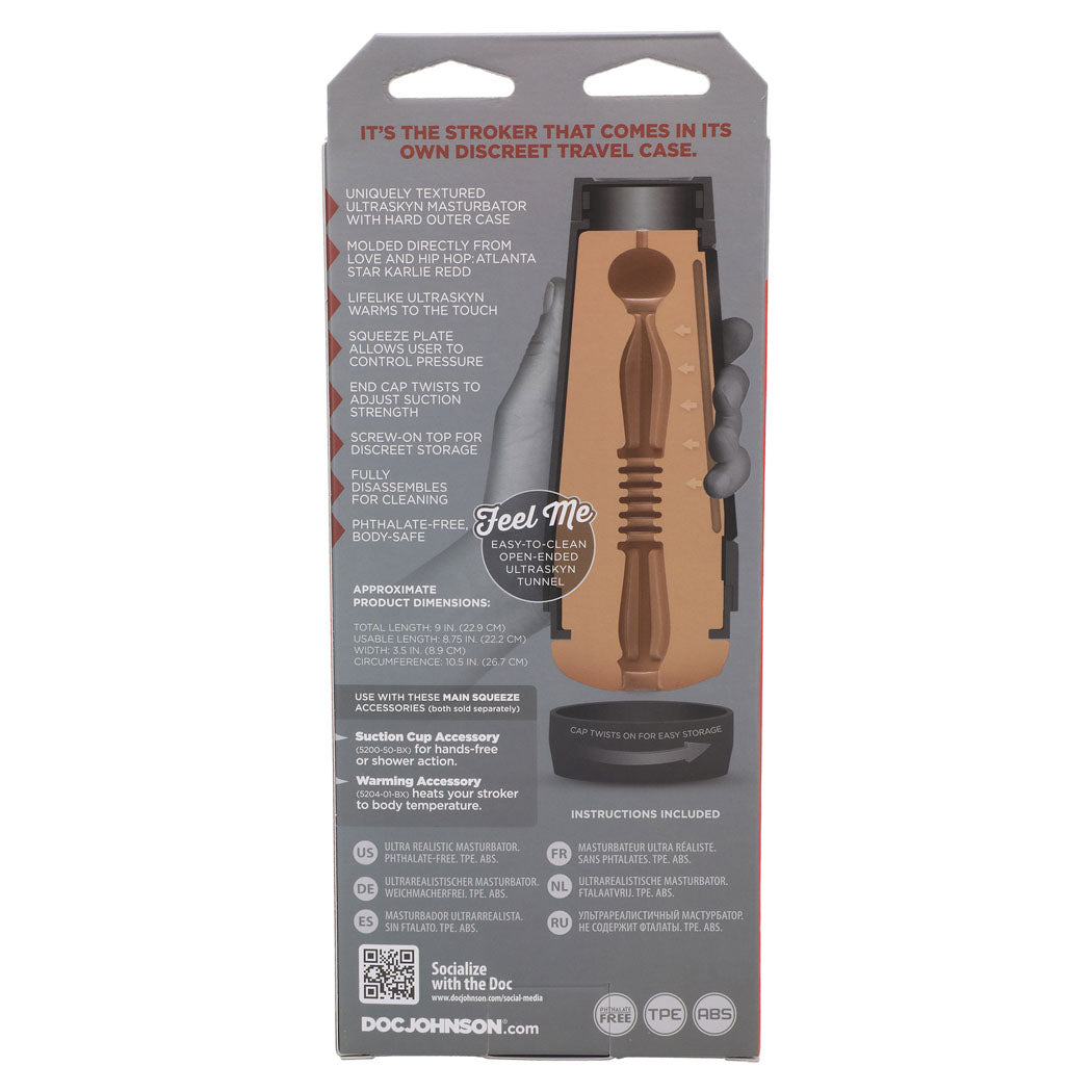 Karlie Redd, Star of Love and Hip Hop: Atlanta, has joined Doc Johnson’s Main Squeeze line with her own hard-case masturbator. It's designed to put the power in your hands and features a squeezable grip and suction-adjusting cap that let you vary each stroke. Molded directly from Karlie's body, this ULTRASKYN stroker looks and feels just like the real thing. Each ULTRASKYN sleeve features a different textured interior, making your experience as unique as each of our sexy Main Squeeze girls. The double-cap hardshell design doubles as a discreet travel and storage case, keeping your Main Squeeze fresh and ready for whenever the mood strikes.