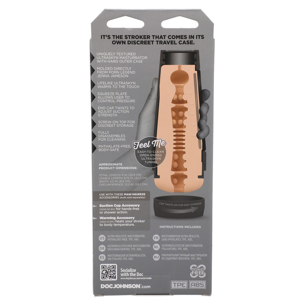 Porn legend Jenna Jameson has joined Doc Johnson’s Main Squeeze line with her own hard-case masturbator. It's designed to put the power in your hands and features a squeezable grip and suction-adjusting cap that let you vary each stroke. Molded directly from Jenna's body, this ULTRASKYN stroker looks and feels just like the real thing. Each ULTRASKYN sleeve features a different textured interior, making your experience as unique as each of our sexy Main Squeeze girls. The double-cap hardshell design doubles as a discreet travel and storage case, keeping your Main Squeeze fresh and ready for whenever the mood strikes.