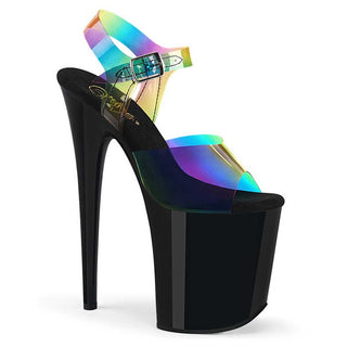 Pleaser Shoes Flamingo-808RB 8" Heel Platform Ankle Strap Sandal with Rainbow Upper