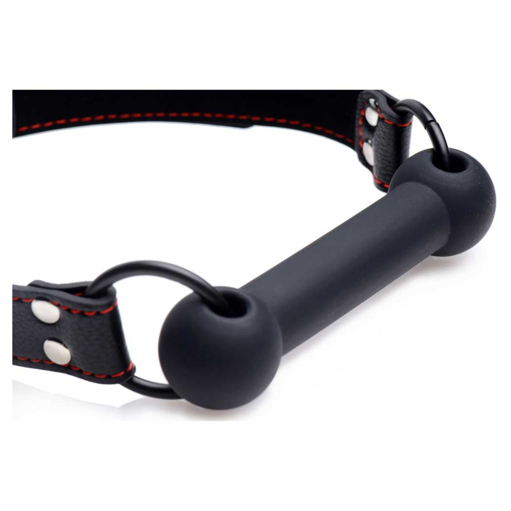 Strap your pet into this attractive and comfortable bit gag to subdue them during your play sessions. With a classic design and bold red stitching against the leather-like material, the sheer appearance of this accessory will get you both excited for whats to come. The adjustable strap easily secures where the head meets the neck. The high grade silicone is durable, as well as non-porous and phthalate-free for a body-safe experience. Enjoy every muffled moan from that dripping wet mouth when your plaything wears this beautiful bit gag!