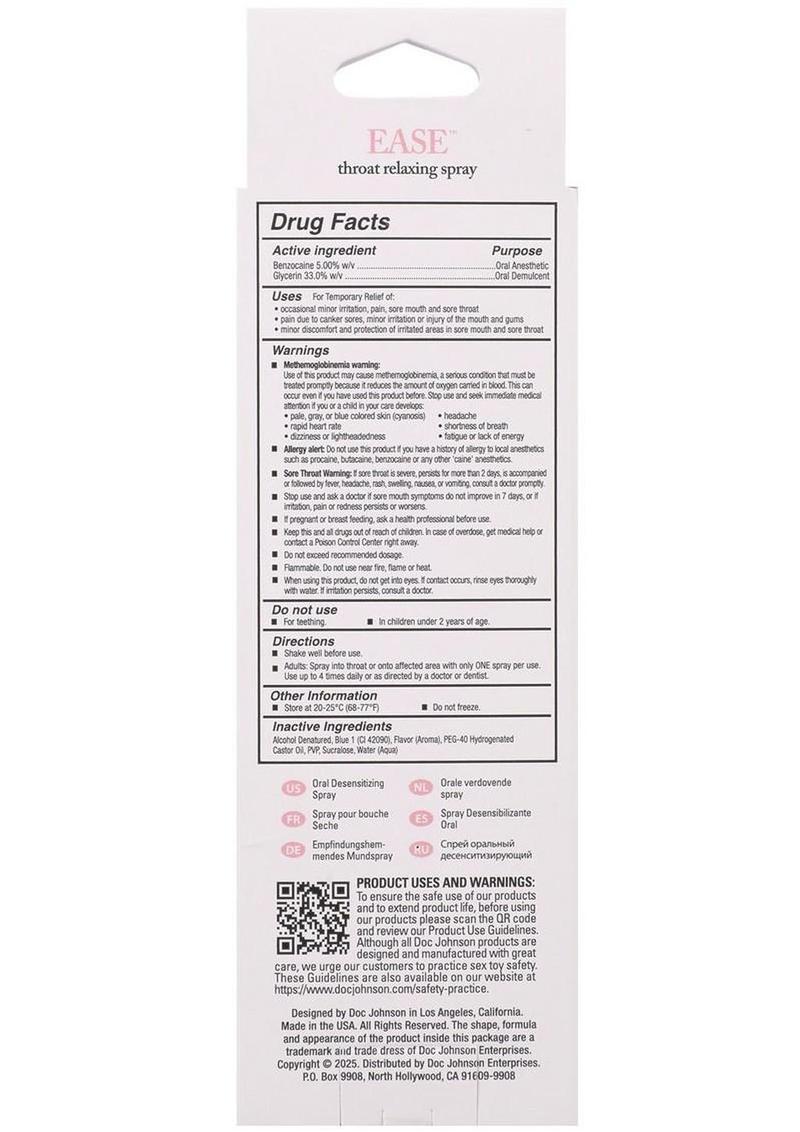 Easy oral has never been easier! Ease offers a delicious mild numbing agent with a delicious Cotton Candy flavored spray. No gag reflex, no discomfort, just a mind-blowing deep throat experience.