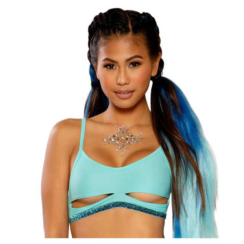 Shimmer with confidence in this glitter-trimmed strap top. Designed with stretch glitter elastic and a sleek tricot base, this piece delivers a bold, eye-catching look. Whether layered or worn solo, it’s the perfect blend of edgy and effortless.