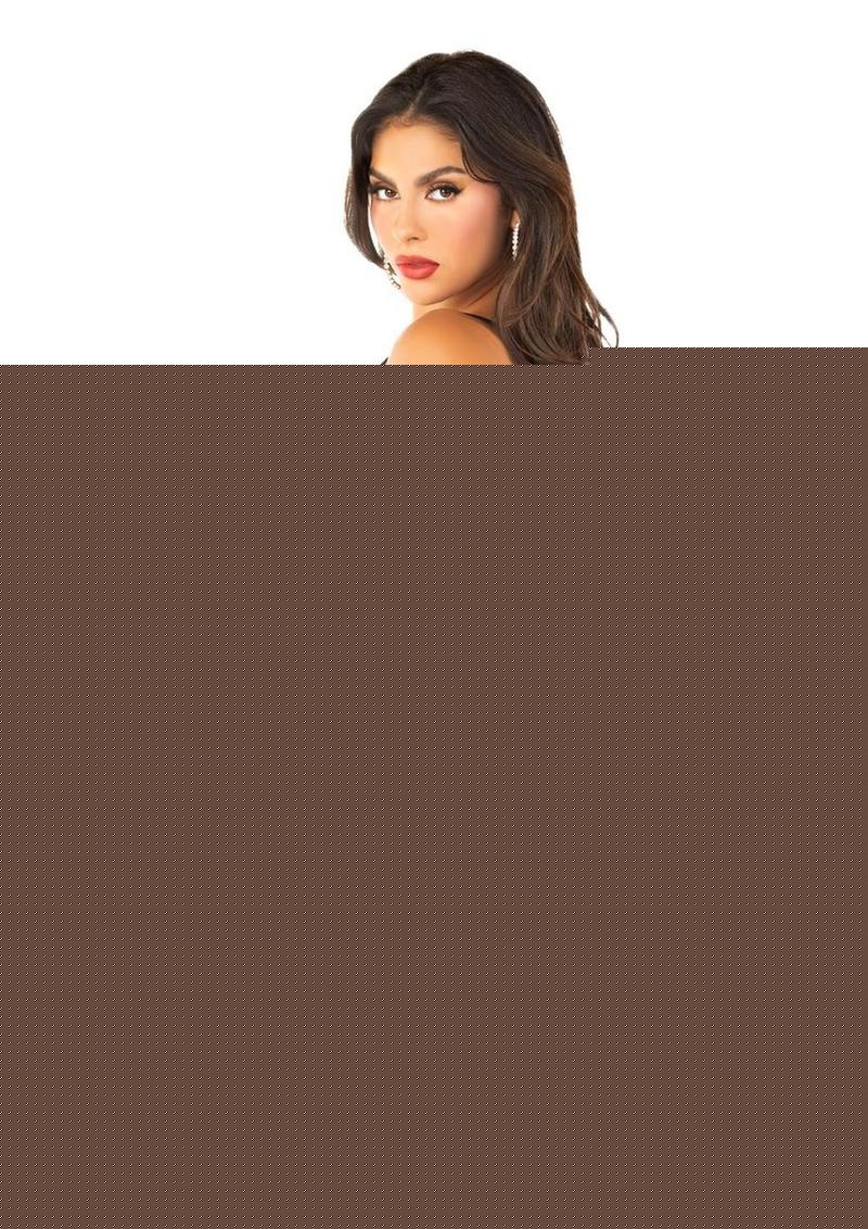 Leg Avenue Lace and Net Cami Garter with Attached Stockings and G-String Panty