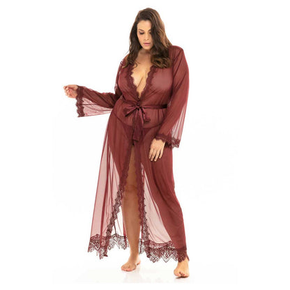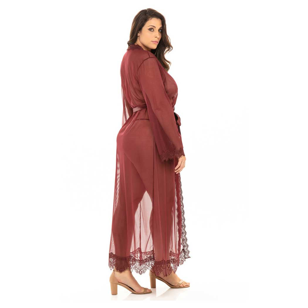 Alluring and sophisticated, the Provence Sheer Mesh Long Robe from OH LÀ LÀ CHÉRI is the perfect loungewear piece. This robe is crafted with the softest sheer mesh and beautiful scalloped lace, and features a double-faced satin ribbon designed to be worn tied at the waist or worn open.