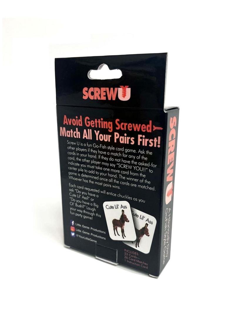 Screw U is a Go Fish Style card game. This hilarious adult party card game will have your guests roaring in delight!