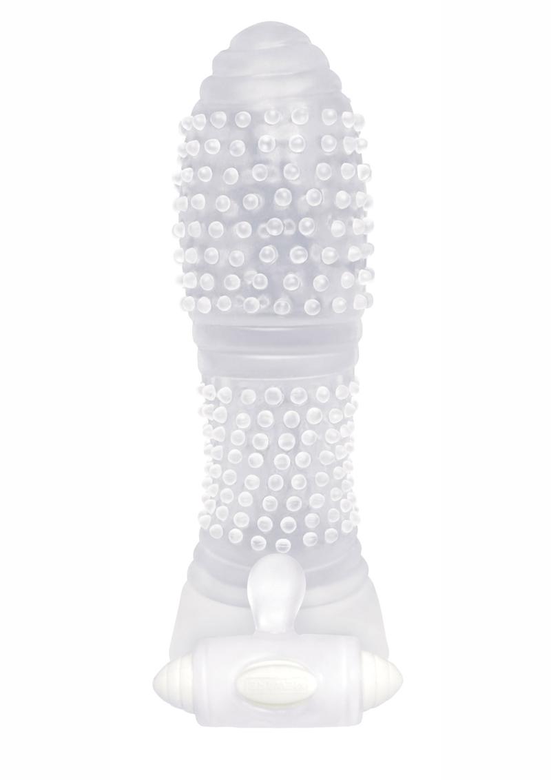 These cool looking vibrating extenders come in three unique styles, and each is a generous 5 1/2" long. In sexy, crystal-clear, body-safe TPR, they swirl, nub, ri'and more, and add size and sensation to sex, at a sensationally affordable price. You're looking at Nubbed, which has incredible pleasure "fingers" that are terrifically simulating! What's more, the vibrator's clever location stimulates the base of the penis while it rubs her just right! There's even a 3-Pack for changing textural sensations nightly"&what could be more fun!